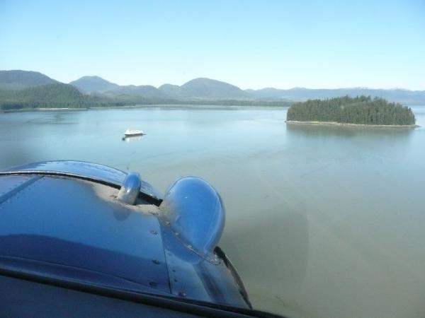 On approach for a water landing off the stern of the ship. It wasn't as thrilling as a carrier