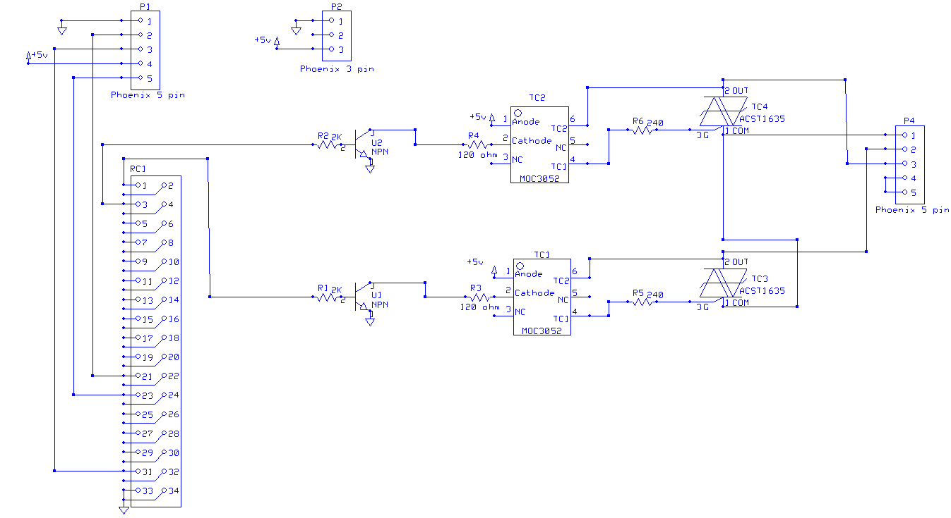 P1 is a connector for the five wires from the position sensor. The sensor used is a US Digital Type E6 sensor.